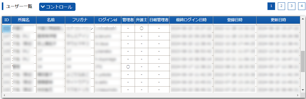 一覧の中から対象ユーザーを選択した状態(選択されているとID部分が水色になる)で、各動作を行う。
