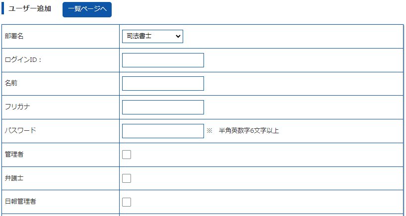 新たなユーザーの登録ができる。各項目に入力をし、「登録」ボタンを押す。