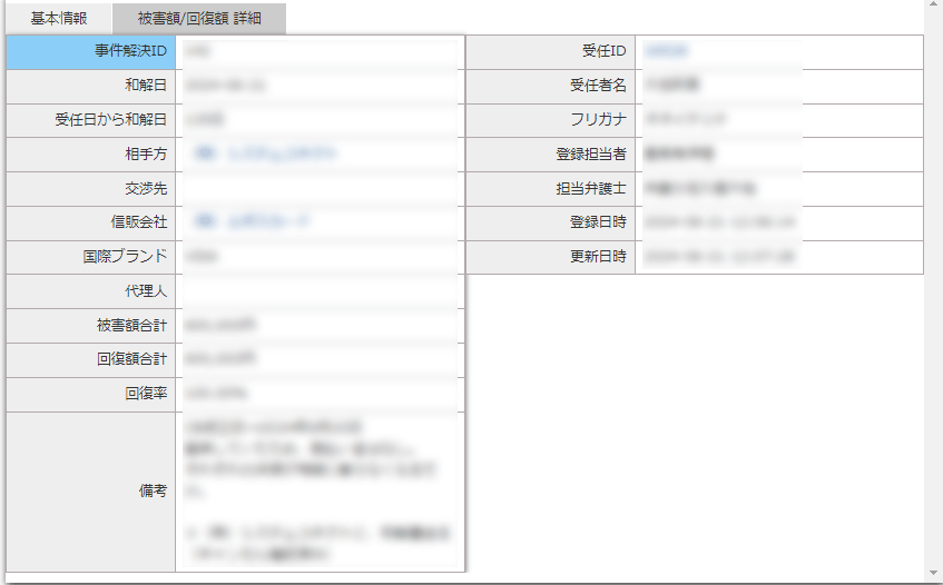 被害額/回復額 詳細