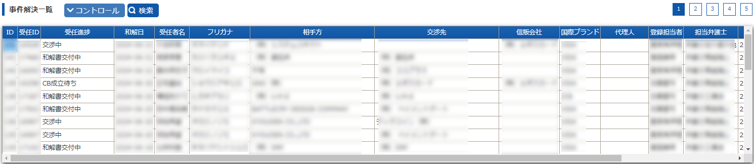 「事件解決登録」された受任者を一覧で見ることができる。