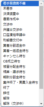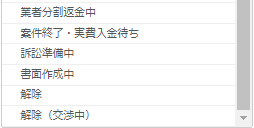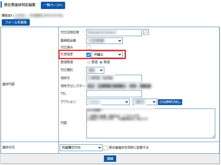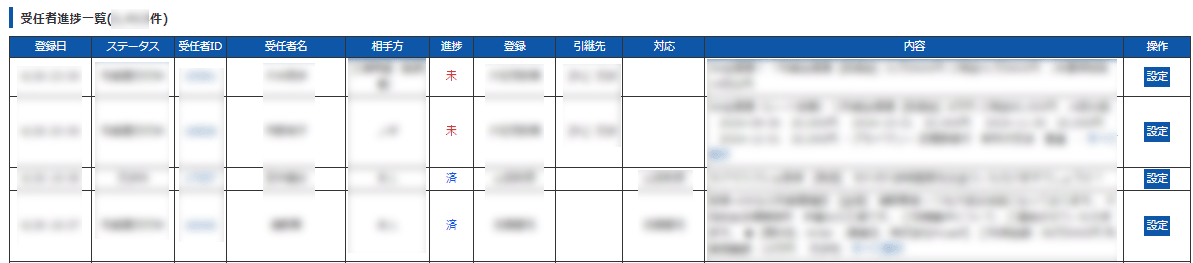 青い「設定」ボタンを押すと受任者進捗対応登録内容の編集を行う事ができる。