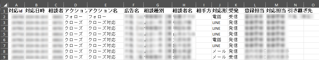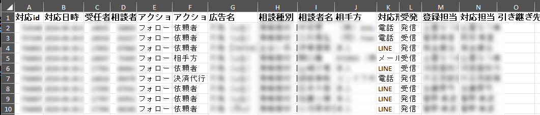 指定した期間の相談者進捗対応/受任者進捗対応において、対応済みの対応データをエクセルで出力できる。