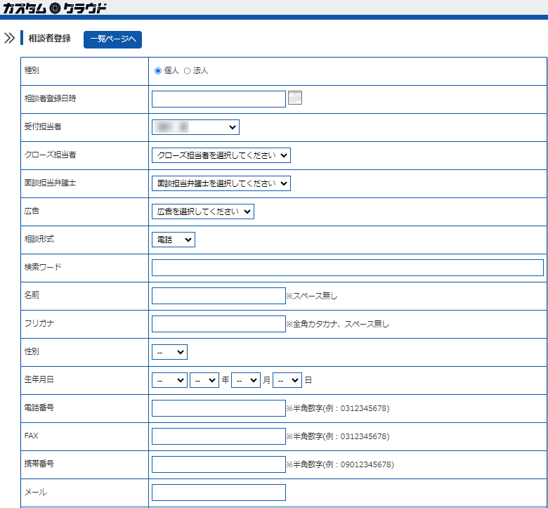 (実際の「相談登録日時」は、一番下の「登録」ボタンを押して登録を行った日時)